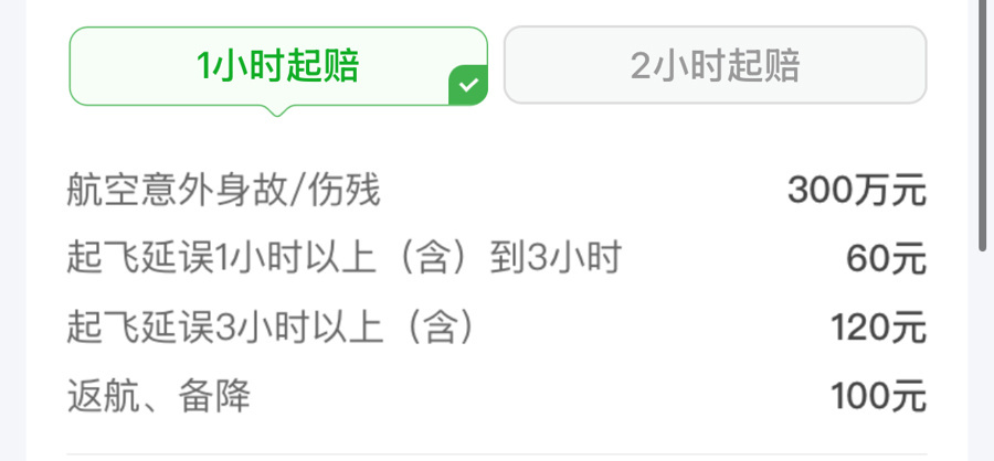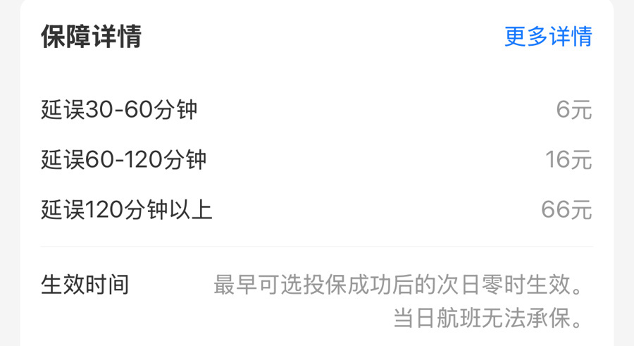 A平台销售的航班延误险同时介绍了理赔内容与生效时间