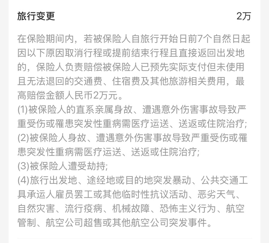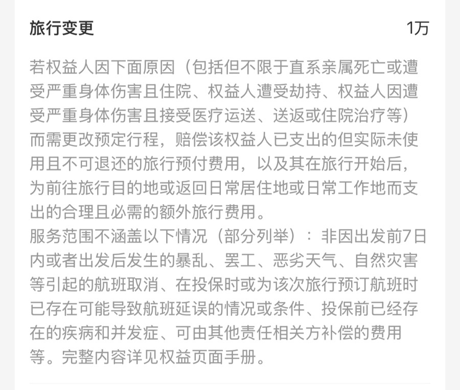 还有,部分旅行目的地属于地震等自然灾害多发地带,旅客在投保时会倾向于选择那些提供“旅行变更”赔偿的保险产品——若出现自然灾害,投保人取消行程或提前结束行程时,会产生额外支出或损失,希望保险公司能提供赔偿。不过,从不同保险产品的细则看,虽然这项理赔服务都叫“旅行变更”,但理赔条件和内容有差异:有的保险只覆盖投保人预先支付但无法使用而造成的交通费、住宿费损失,有的却提供变更行程产生的新支出。